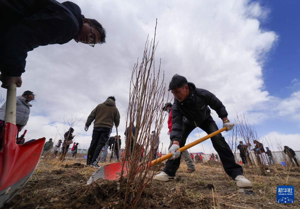 4月25日,西藏那曲市開展義務(wù)植樹活動(dòng),為這片高海拔地區(qū)再添一抹新綠。
