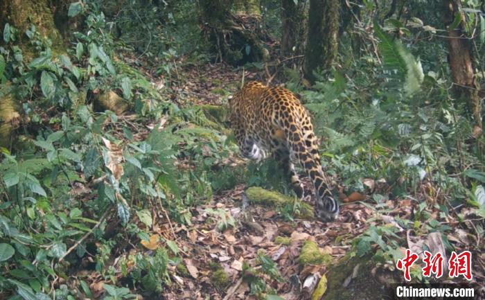 圖為雅魯藏布大峽谷國家級(jí)自然保護(hù)區(qū)內(nèi)的西藏自治區(qū)墨脫縣記錄到的金錢豹的活動(dòng)影像。山水自然保護(hù)中心供圖