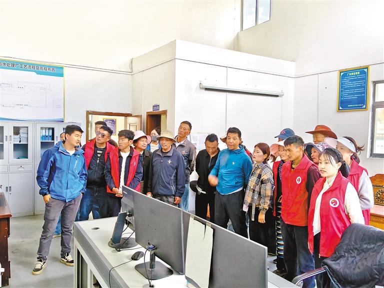 圖為加查縣洛林鄉(xiāng)布姆村黨員在縣污水處理廠參觀學(xué)習(xí)。記者 巴桑旺姆 攝