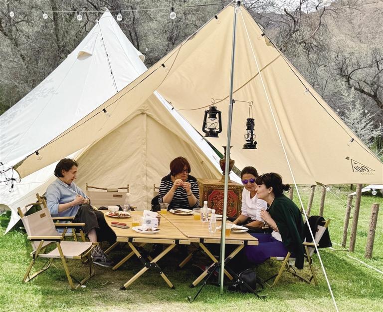 李女士說(shuō):“林卡中有一條小河流穿過(guò),大人孩子可以在這里打水仗、坐船,玩累了還可以在這里燒烤,這就是我喜歡這里的原因?!背水?dāng)?shù)厝耍€有很多游客喜歡來(lái)這里體驗(yàn),喝一杯啤酒,跳一曲鍋莊舞,感受一下當(dāng)?shù)卮緲愕拿耧L(fēng)。