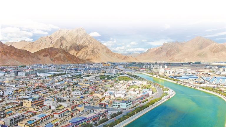 圖為綠意環(huán)繞的獅泉河鎮(zhèn)。 西藏日?qǐng)?bào)記者 洛桑旦增 達(dá)珍 永青 攝