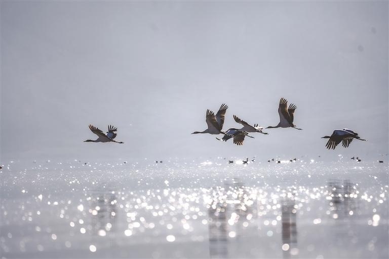 近日,被譽(yù)為 “高原仙子”的國(guó)家一級(jí)保護(hù)動(dòng)物黑頸鶴如期飛抵拉薩市林周縣卡孜水庫(kù)越冬,與斑頭雁、赤麻鴨等水鳥共同構(gòu)成高原濕地生態(tài)畫卷。
