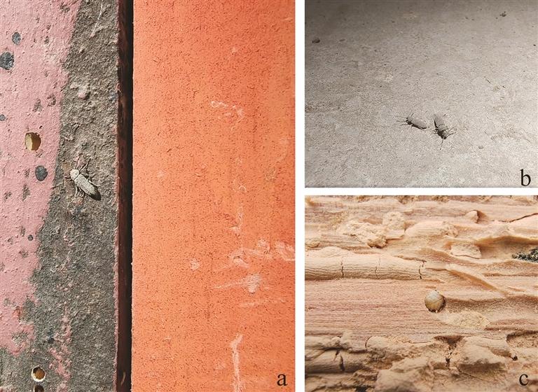博士生周璇介紹,根據(jù)現(xiàn)有調(diào)查數(shù)據(jù),該新種主要分布于布達(dá)拉宮、羅布林卡及拉薩部分歷史悠久的古建筑木結(jié)構(gòu)中。該物種一年發(fā)生一代,屬于完全變態(tài)昆蟲,其幼蟲具有鉆蛀木材的習(xí)性,提示其參與了古建筑木材的生物降解過程。相關(guān)發(fā)現(xiàn)不僅加深了我們對布達(dá)拉宮等古建筑生態(tài)系統(tǒng)復(fù)雜性的認(rèn)識,也為今后科學(xué)評估生物侵蝕風(fēng)險、保護木質(zhì)文化遺產(chǎn)免受生物影響,提供了重要的基礎(chǔ)數(shù)據(jù)和參考物種。