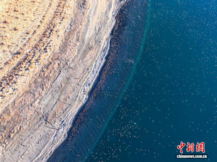1月18日,成群候鳥(niǎo)在沉錯(cuò)水域越冬。(無(wú)人機(jī)照片)中新社記者 貢嘎來(lái)松 攝
