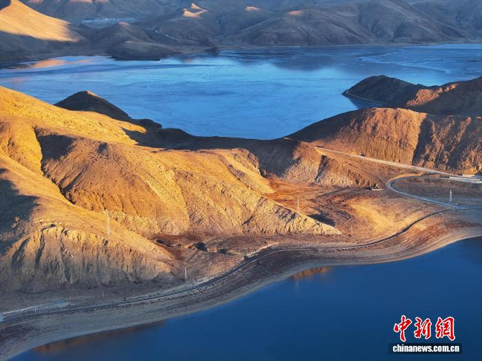 1月18日,西藏羊卓雍錯(cuò)流域沉錯(cuò)風(fēng)光。沉錯(cuò)地處西藏羊卓雍錯(cuò)東部,是羊卓雍錯(cuò)水系重要組成部分,湖形狹長(zhǎng)、湖水深邃,因湖底地形復(fù)雜得名。作為羊卓雍錯(cuò)流域內(nèi)關(guān)鍵生態(tài)區(qū)域,沉錯(cuò)已成為眾多候鳥(niǎo)越冬的樂(lè)園。(無(wú)人機(jī)照片)中新社記者 貢嘎來(lái)松 攝
