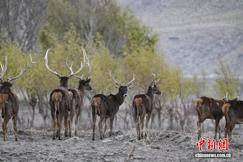 3月15日,在西藏山南市雅魯藏布江沿岸林地,中國國家一級保護(hù)動物白唇鹿成群現(xiàn)身。它們或漫步覓食,或駐足觀望,與高原江水、河谷林木、城市建筑相映成趣,構(gòu)成和諧畫面。