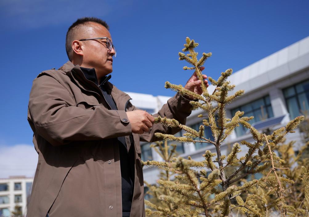 3月20日上午10點(diǎn)30分,扎西像往常一樣來到市科技局的院子里,仔細(xì)查看樹木的長勢。他彎腰伸手,摸了摸樹的葉子和枝條,又踩了踩樹下的土壤?!霸蕉闆r總體穩(wěn)定,也有了返青跡象,可以開始澆水、施肥了?!痹餍老驳卣f。