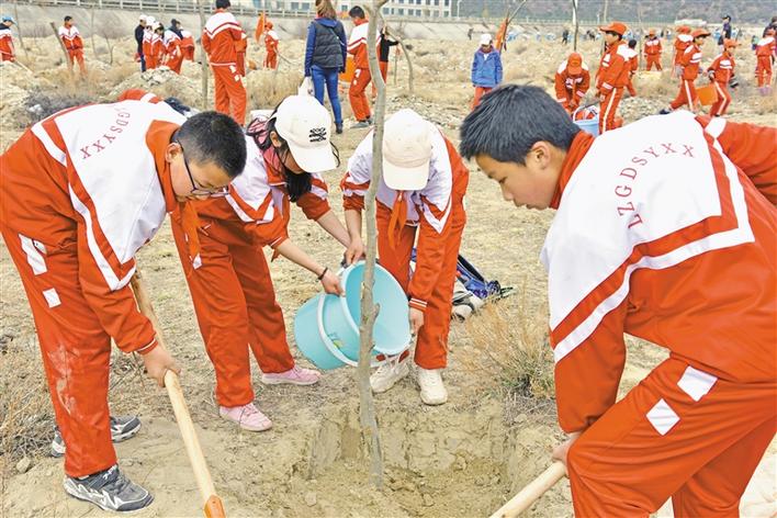 西藏林芝廣東實(shí)驗(yàn)學(xué)校組織學(xué)生參加義務(wù)植樹活動(dòng)