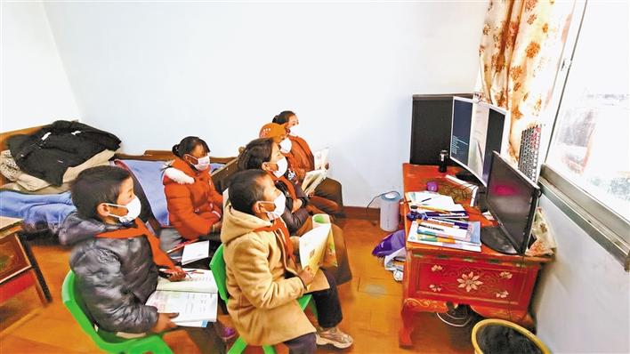 在駐村點為當(dāng)雄縣納木湖鄉(xiāng)小學(xué)生安排網(wǎng)課集中學(xué)習(xí)點。索朗扎巴 攝