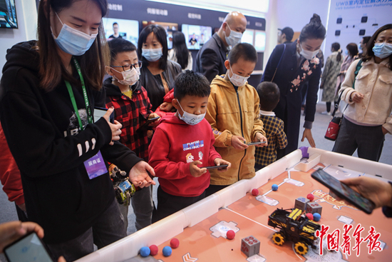 11月1日,山西太原,中國(太原)人工智能大會主題展覽現(xiàn)場,一家主打人工智能和機器人的高科技創(chuàng)新公司研發(fā)的機器人競技類游戲吸引了許多小朋友駐足體驗。10月31日,中國(太原)人工智能大會舉辦,大會主題展覽同步舉行,40余個展位集中展示當(dāng)前人工智能產(chǎn)業(yè)核心技術(shù)、產(chǎn)品和創(chuàng)新成果。
