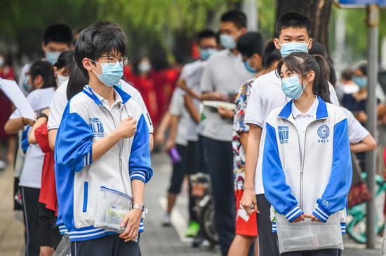 資料圖:2020年7月6日,江蘇南京一處考點,高考考生看完考場后走出考點。 中新社記者 泱波 攝