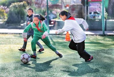 格日么色格參加學(xué)校的系統(tǒng)訓(xùn)練已有兩個月,雖然球感和跑位還較弱,但也在不斷進(jìn)步。如今她每天放學(xué)后都會再到球場加練半個小時,晚上回家做完作業(yè)也會在壩子里顛一個多小時的球?!艾F(xiàn)在我不僅能射門,帶球也好了很多。”格日么色格表示,自己是真心喜歡足球?!疤咦闱虿粌H能讓我感到快樂,還讓我看到希望——長大后,我想出去看更廣闊的世界。”