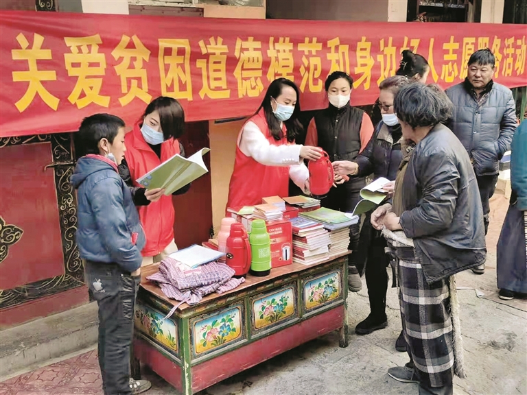 28日,拉薩市委宣傳部機(jī)關(guān)黨支部志愿服務(wù)隊深入我市道德模范和身邊好人家庭,開展慰問幫扶、送溫暖、獻(xiàn)愛心活動,還清掃街道,營造了干凈整潔的環(huán)境。