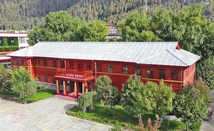 波密縣人民政府機關(guān)大院,面前這幢坐北朝南、古樸典雅的紅色兩層仿蘇聯(lián)式木樓,便是巍然屹立60余載的扎木中心縣委紅樓。
