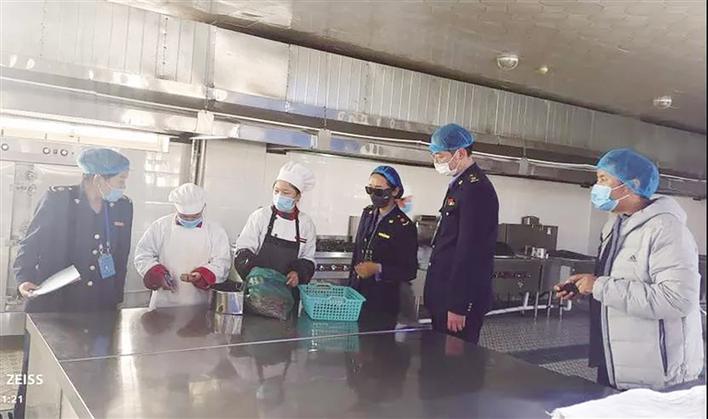 拉薩市市場監(jiān)管局執(zhí)法人員檢查學(xué)校后廚衛(wèi)生。圖由 拉薩市市場監(jiān)管局 提供