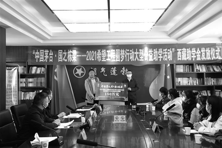 10月25日,共青團(tuán)西藏自治區(qū)委員會(huì)、西藏青少年發(fā)展基金會(huì)和貴州茅臺(tái)酒廠(chǎng)(集團(tuán))有限責(zé)任公司在拉薩舉行“中國(guó)茅臺(tái)·國(guó)之棟梁”2021希望工程圓夢(mèng)行動(dòng)大型公益助學(xué)活動(dòng)西藏助學(xué)金發(fā)放儀式。