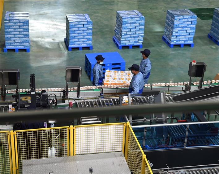 西藏奶產(chǎn)品企業(yè)員工在包裝學生飲用奶產(chǎn)品