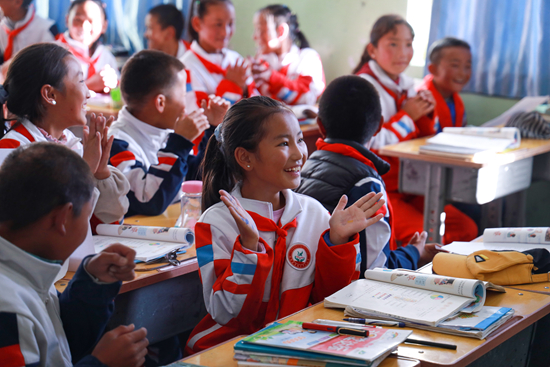 充分了解當(dāng)?shù)亟虒W(xué)情況和學(xué)生需求后,關(guān)愛隊(duì)師生為藏族孩子們定制了英語、音樂、素質(zhì)拓展等一系列特色課程。