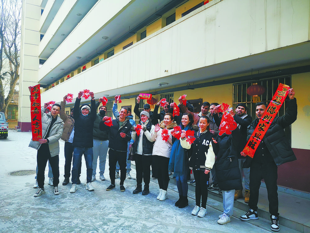 寫對聯(lián)、貼窗花、包餃子、聽故事……春節(jié)期間,青海民族大學22名來自美國、加拿大、挪威、阿根廷、土庫曼斯坦、烏茲別克斯坦、哈薩克斯坦等10個國家的留學生在青海過了一個快樂的“中國年”。