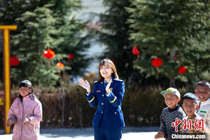 在活動(dòng)中,志愿者們首先與孩子們進(jìn)行了自我介紹,詳細(xì)了解孩子們的生活、學(xué)習(xí)情況。同時(shí),帶著孩子們開展跳繩、丟沙包、短跑等互動(dòng)活動(dòng)。隨后,藏族歌手、總隊(duì)教育宣傳處助理員索朗德吉為孩子們演唱歌曲,在動(dòng)聽的旋律中不時(shí)傳來(lái)孩子們的歡聲笑語(yǔ),其樂融融的氛圍,更是感染著在場(chǎng)的每一個(gè)人。