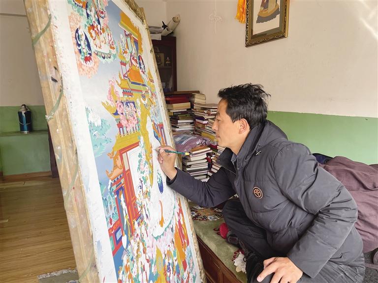 國家級(jí)非物質(zhì)文化遺產(chǎn)藏族唐卡勉薩派自治區(qū)級(jí)代表性傳承人貢覺杰,是日喀則市拉孜縣若錯(cuò)勉沖唐卡世家的第五代傳承人。他自幼跟隨家族中的長輩學(xué)習(xí)唐卡,如今已成長為唐卡畫師中的“佼佼者”。藝無止境,是貢覺杰的堅(jiān)持。2016年,一次赴清華大學(xué)美術(shù)學(xué)院學(xué)習(xí)的偶然機(jī)會(huì),徹底改變了他的創(chuàng)作思路。今天,一起聽聽他和新題材唐卡的故事。文/圖 記者 趙越