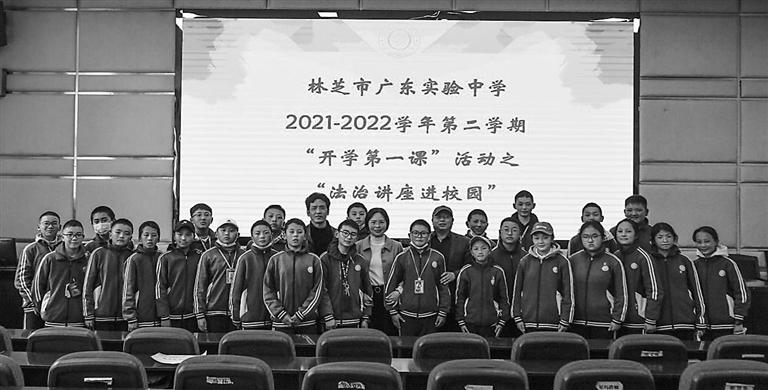 圖為活動(dòng)現(xiàn)場(chǎng)林芝市司法局工作人員與同學(xué)們合影。 記者 王杰學(xué) 攝