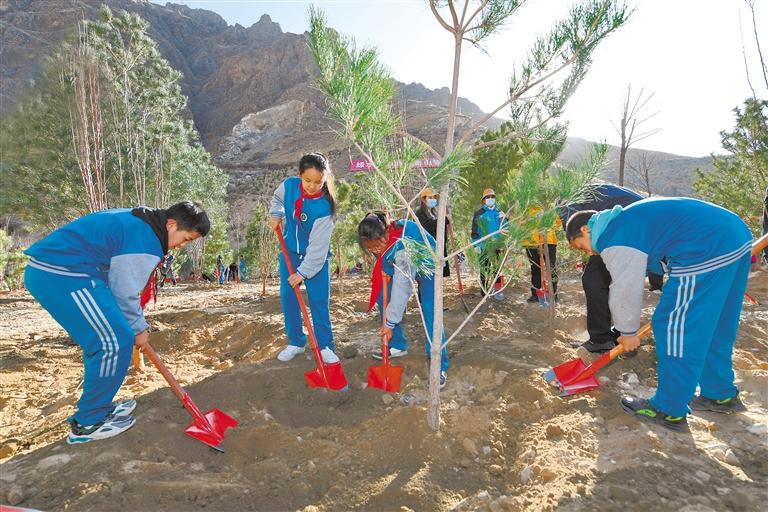 為踐行綠水青山就是金山銀山理念,積極推進(jìn)生態(tài)文明建設(shè),日前,拉薩市姜昆黃小勇希望小學(xué)學(xué)生和社會各界人士,共同開展義務(wù)植樹活動。