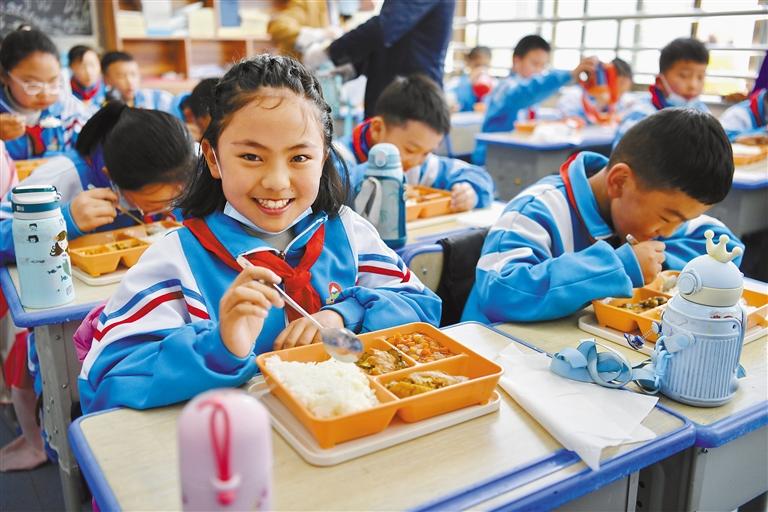 圖為拉薩市實驗小學東城分校小學生在享用營養(yǎng)午餐(5月12日攝)。新華社記者 張汝鋒 攝