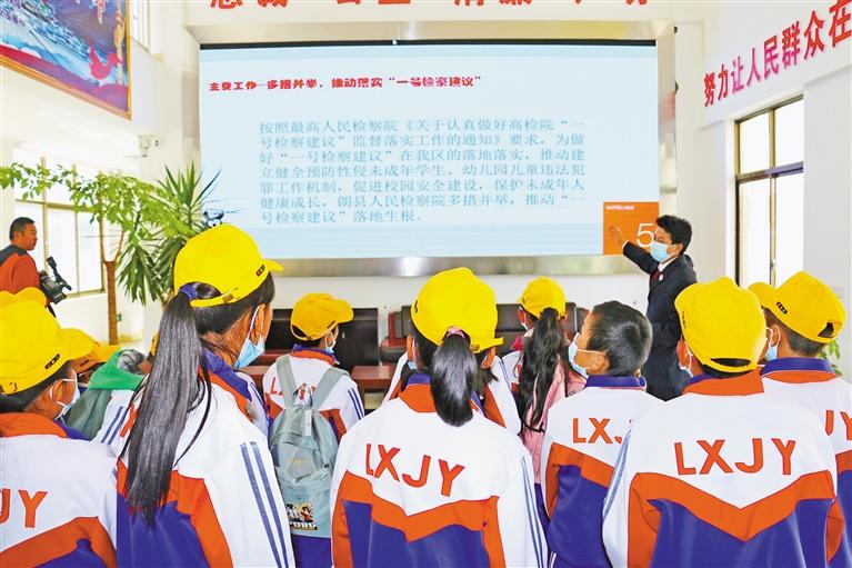 自2016年法治進(jìn)校園活動開展以來,索朗旺久以高度的擔(dān)當(dāng)意識,積極克服公訴、未檢人手不足的困難局面,先后擔(dān)任朗鎮(zhèn)小學(xué)法治副校長、朗縣中學(xué)法治輔導(dǎo)檢察官,及時制訂《開展“法治進(jìn)校園”全縣巡講活動實(shí)施方案》,定期深入全縣8所中小學(xué)及幼兒園開展法治宣講活動。