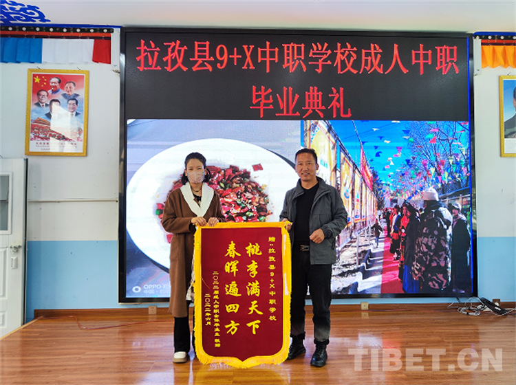 典禮上,拉孜縣9+X中職學(xué)校校長旦珍旺加對廣大畢業(yè)生殷殷囑托,希望他們在今后的工作崗位上事業(yè)有成、蒸蒸日上。隨后由成人中職學(xué)校代表、學(xué)生家長向?qū)W校贈送錦旗,以感謝學(xué)校一直以來為學(xué)生們提供學(xué)習(xí)與實(shí)踐平臺,為孩子們培養(yǎng)技能。