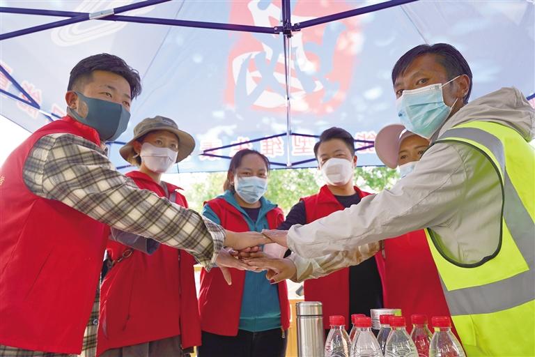 志愿者設(shè)置服務(wù)點提供幫助。文/記者 梁蘭 圖/記者 秦盼