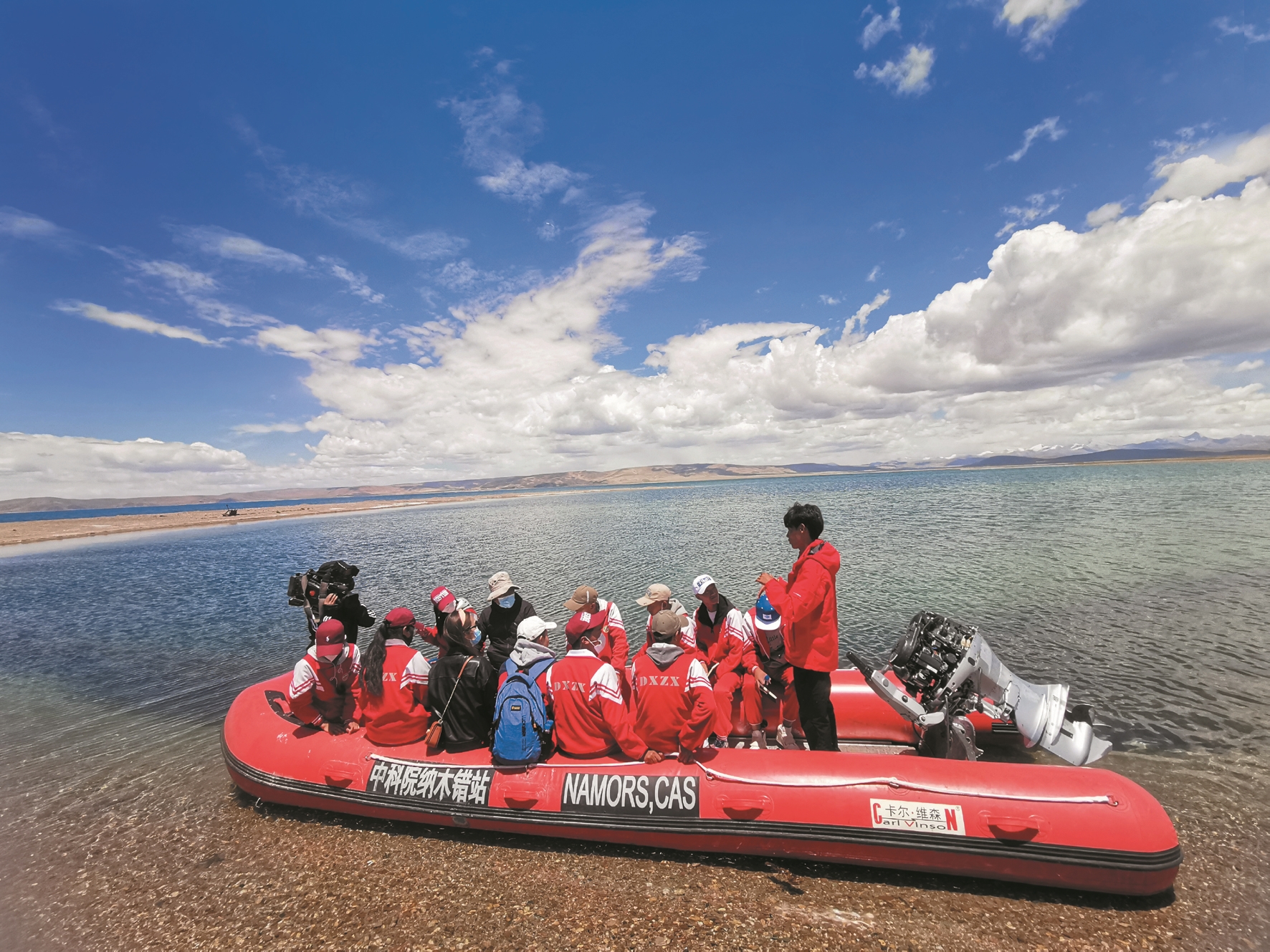 圖為青藏高原研究所的科學(xué)家們在納木措湖邊開展科普研學(xué)實(shí)踐活動(dòng)。拉薩融媒記者 滿文妍攝