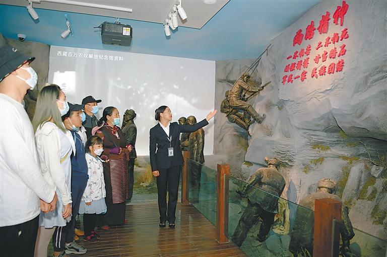 大力弘揚(yáng)“兩路”精神和老西藏精神,凝聚共創(chuàng)美好未來(lái)的強(qiáng)大奮進(jìn)力量。圖為2022年3月,西藏各族群眾參觀西藏百萬(wàn)農(nóng)奴解放紀(jì)念館。