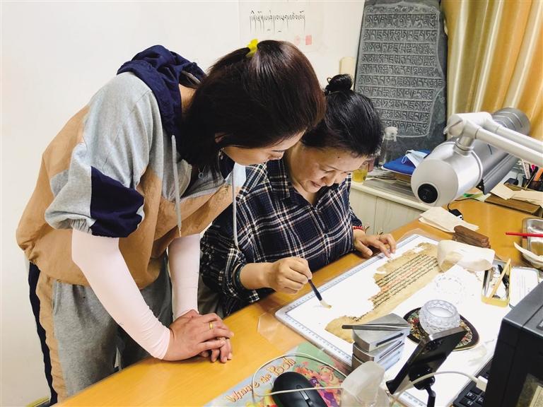 2015年自治區(qū)古籍修復(fù)中心成立以來,在國家圖書館和云南省圖書館等專業(yè)修復(fù)中心接受培訓(xùn)實(shí)踐的修復(fù)人員積極投入到藏文古籍修復(fù)工作中,相繼完成了拉薩市墨竹工卡縣芒熱寺破損古籍的修復(fù)任務(wù),修復(fù)古籍文獻(xiàn)共248葉,拍攝建檔496幅圖片,并把這部分完成修復(fù)的古籍文獻(xiàn)同目錄按正規(guī)程序移交給寺廟。完成了對山南市隆子縣加玉鄉(xiāng)強(qiáng)慶村白嘎寺的237函、3萬多葉的珍貴古籍文獻(xiàn)的整理、建檔和拍攝書影等工作。同時啟動了7000多葉破損古籍的修復(fù)工作,截至目前已完成4420葉破損古籍的修復(fù),為進(jìn)一步做好傳統(tǒng)古籍文獻(xiàn)的再利用和原生性保護(hù)給予了有力保障。