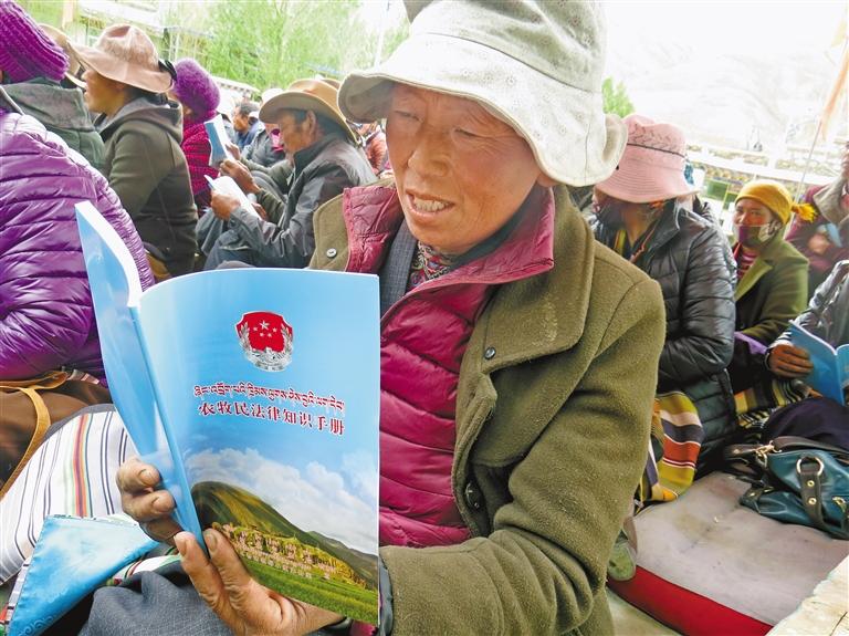 圖為村民認(rèn)真學(xué)習(xí)《農(nóng)牧民法律知識手冊》。記者 巴桑旺姆 攝