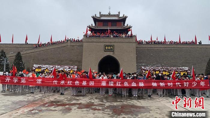 圖為甘肅省白銀市白銀區(qū)第十四小學(xué)“開學(xué)第一課”學(xué)生參觀紅色教育基地。 甘肅省白銀市白銀區(qū)第十四小學(xué)供圖