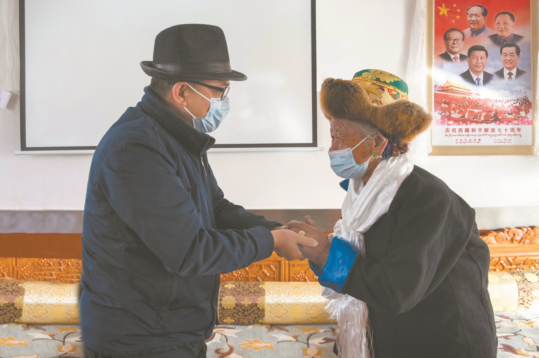 藏歷新年臨近,城關(guān)區(qū)特困人員集中供養(yǎng)中心內(nèi)暖意融融,在工作人員的悉心照料下,老人們幸福地安享晚年生活。“新年快樂、扎西德勒”,帶著黨和政府的關(guān)懷與溫暖,王強(qiáng)為老人們敬獻(xiàn)哈達(dá),致以節(jié)日美好祝福,關(guān)切地詢問老人們的飲食起居和身體狀況,語重心長地告訴大家黨的光輝照邊疆,要飲水思源,聽黨話、感黨恩、跟黨走,保重身體、樂享晚年。
