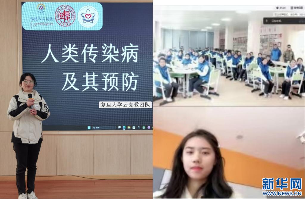 復(fù)旦大學(xué)云支教團(tuán)隊(duì)與華南師范大學(xué)研究生支教團(tuán)隊(duì)昌都分隊(duì)的老師,正在通過(guò)“雙師云課堂”為學(xué)生們授課。