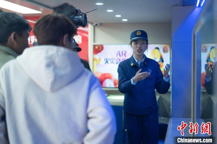 圖為學(xué)生體驗(yàn)VR消防體驗(yàn)室?!∝暩聛硭?攝