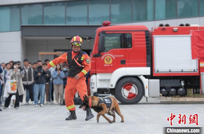 圖為搜救犬表演現(xiàn)場?!∝暩聛硭?攝