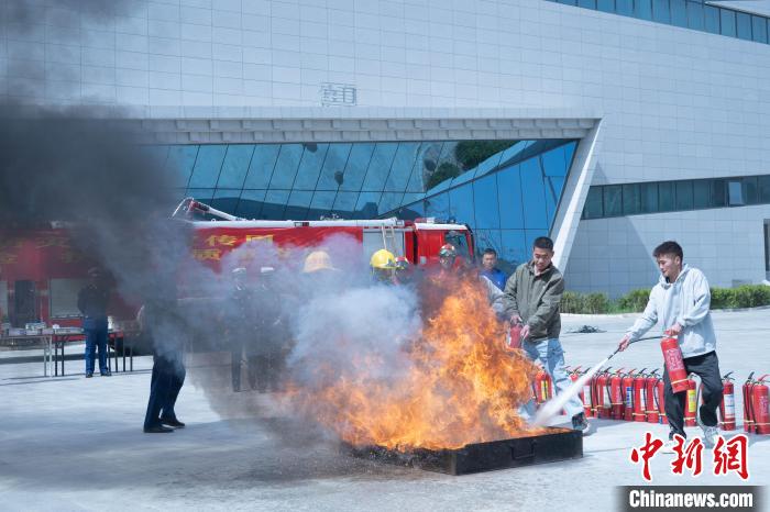 圖為學(xué)生體驗(yàn)油盆火災(zāi)撲救?!∝暩聛硭?攝
