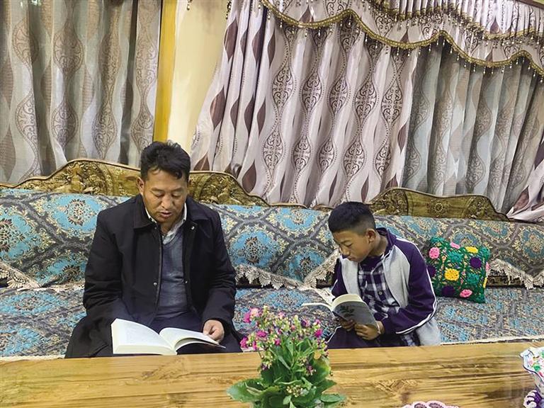 在頓珠的影響下,妻子桑巴曲珍也愛上了讀書。閑暇之余,夫妻兩人總會各自捧著一本心愛的書籍慢慢閱讀。孩子出生以后,頓珠也像父親一樣,在潛移默化中逐步培養(yǎng)孩子的閱讀興趣,傳承熱愛閱讀的優(yōu)良家風。“我認為,讀書可以幫助孩子開闊視野,啟智明理。作為家長,我們始終堅持和孩子一起閱讀,相互陪伴、共同成長,建立良好的親子關(guān)系。”