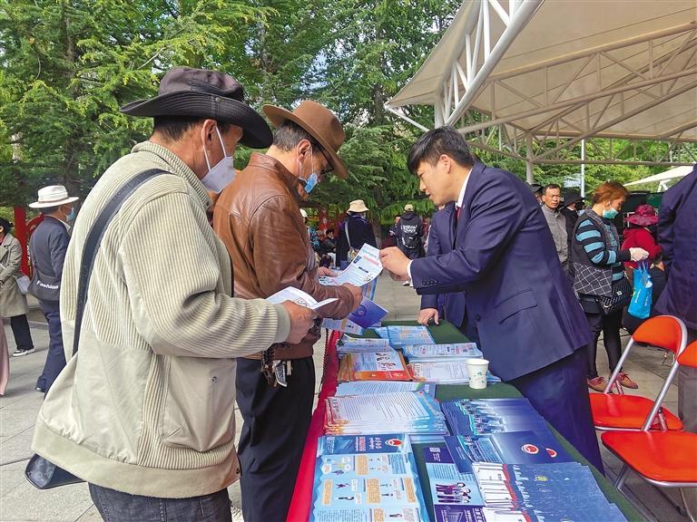 圖為拉薩市人民檢察院干警現(xiàn)場(chǎng)回答市民關(guān)于詐騙等法律問(wèn)題。