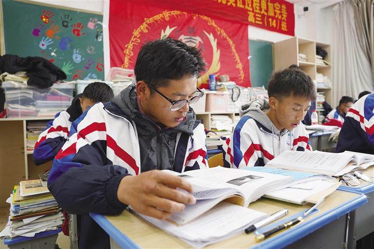 高三教學(xué)樓,遠(yuǎn)遠(yuǎn)便聽見教室里傳來的朗朗書聲。課堂上,老師正耐心細(xì)致地講解著習(xí)題,同學(xué)們時(shí)而認(rèn)真聽講、奮筆疾書,時(shí)而相互討論、請(qǐng)教老師……大家神情堅(jiān)毅、目光堅(jiān)定,在各自的一方天地里埋頭苦學(xué),以最專注的態(tài)度為即將到來的人生大考做著準(zhǔn)備?!敖衲晡覀儗W(xué)校有660余名高三學(xué)生,現(xiàn)在大家都在進(jìn)行最后的沖刺,隨后還會(huì)進(jìn)行一次模擬考試。”拉薩江蘇實(shí)驗(yàn)中學(xué)高三年級(jí)部副主任張姣姣告訴記者,“今年是新課改的第一年,各學(xué)科老師都在盡心盡力幫助同學(xué)們查漏補(bǔ)缺,合理安排最后沖刺階段的學(xué)習(xí)時(shí)間,確保同學(xué)們能夠從容自信地踏入考場(chǎng)?!?/p>