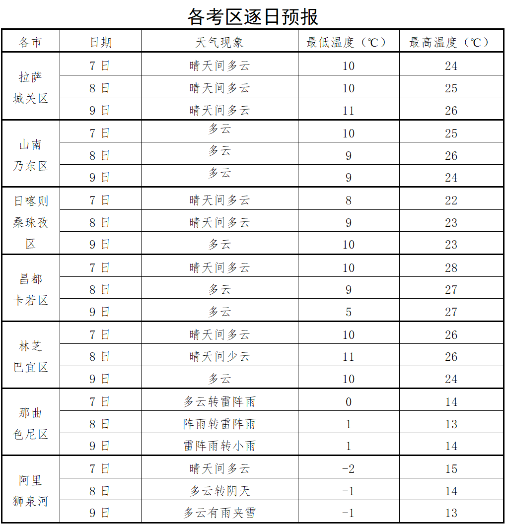 2023年高考期間西藏自治區(qū)天氣預(yù)報(bào)