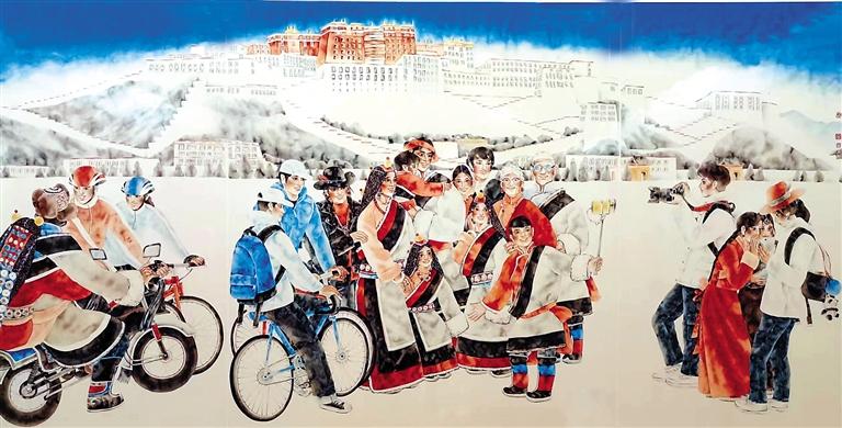 隨著一系列支持政策的持續(xù)推進和西藏各族兒女的團結(jié)奮斗,西藏的經(jīng)濟發(fā)展和民生水平都得到了大幅度提升。同時,關注西藏發(fā)展現(xiàn)實、進行美術創(chuàng)作的藝術家日漸增多,一件件優(yōu)秀美術作品應運而生,并且在全國重要展覽中精彩呈現(xiàn),向人們?nèi)?、立體地展現(xiàn)了新時代西藏人民生活的美好圖景。2022年秋季在中國美術館展出的“第13屆中國藝術節(jié):全國優(yōu)秀美術作品展覽”中,有大量表現(xiàn)西藏民族風情和民生發(fā)展題材的美術作品,從作品構(gòu)思到藝術表現(xiàn),體現(xiàn)出鮮明的民族文化特色和民生繁榮景象,展現(xiàn)出美術創(chuàng)作者深植心底的鑄牢中華民族共同體意識創(chuàng)作理念。