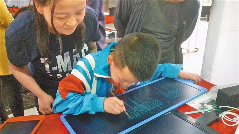 圖為小學(xué)生在次仁多吉設(shè)計(jì)的電子寫字板上書寫藏文字母。見習(xí)記者 武沛濤 攝