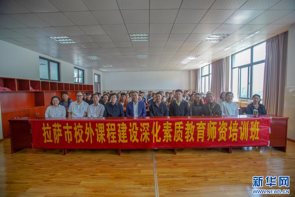 拉薩市校外課程建設(shè)深化素質(zhì)教育師資培訓(xùn)班現(xiàn)場(chǎng)合影(8月23日攝)。新華社記者 邵澤東 攝