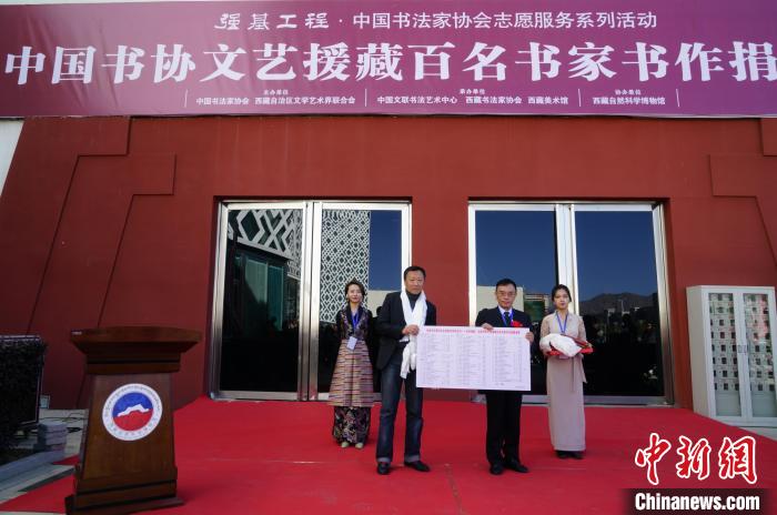 圖為捐贈(zèng)書法作品交接儀式。普布次仁 攝