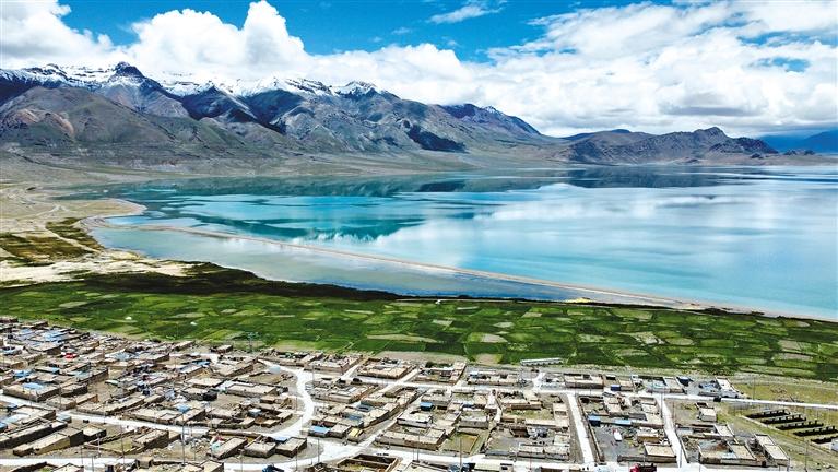 主題教育開(kāi)展以來(lái),西藏各級(jí)各部門(mén)深入貫徹落實(shí)習(xí)近平生態(tài)文明思想,著力創(chuàng)建國(guó)家生態(tài)文明高地取得顯著成效。這是那曲市尼瑪縣文布北村,當(dāng)穹錯(cuò)碧藍(lán)清亮的湖水與湖畔的村落相映,構(gòu)成了一幅人與自然和諧共生的美麗畫(huà)卷。(無(wú)人機(jī)拍攝) 記者 趙書(shū)彬 攝